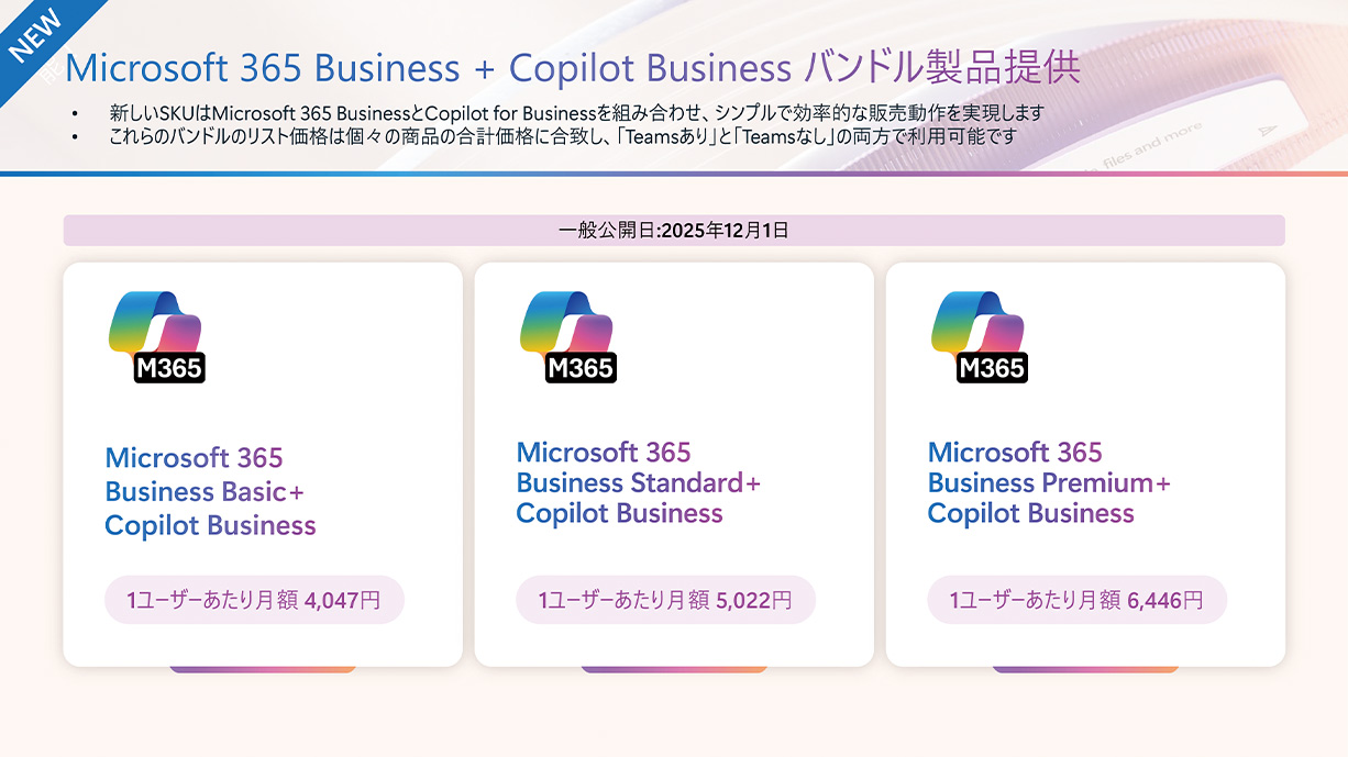 2025年は我々コーポートレートソリューション事業本部にとって、まさに変革の1年になりました。ご存じのとおり当社の中堅・中小企業向けビジネスは、パートナー様のご支援によって成り立っております。エンタープライズ企業と比較してSMBのクラウド移行の出遅れが目立つ中、昨年ワールドワイドに推進されたのが、エンドtoエンドでのクラウドの導入サイクルをサポートする「クラウドソリューションパートナープログラム」の大幅拡充を含む、パートナー様支援を目的とした大規模な再投資でした。我々も当社の年度初めである7月以降、パートナー様を巻き込んで当社のクラウドテクノロジーの魅力や付加価値を中堅・中小企業に届ける新たな仕組みづくりに邁進してまいりました。一連の取り組みは、Microsoft 365 BusinessとCopilot Businessをバンドルした新製品の提供にもつながっています。