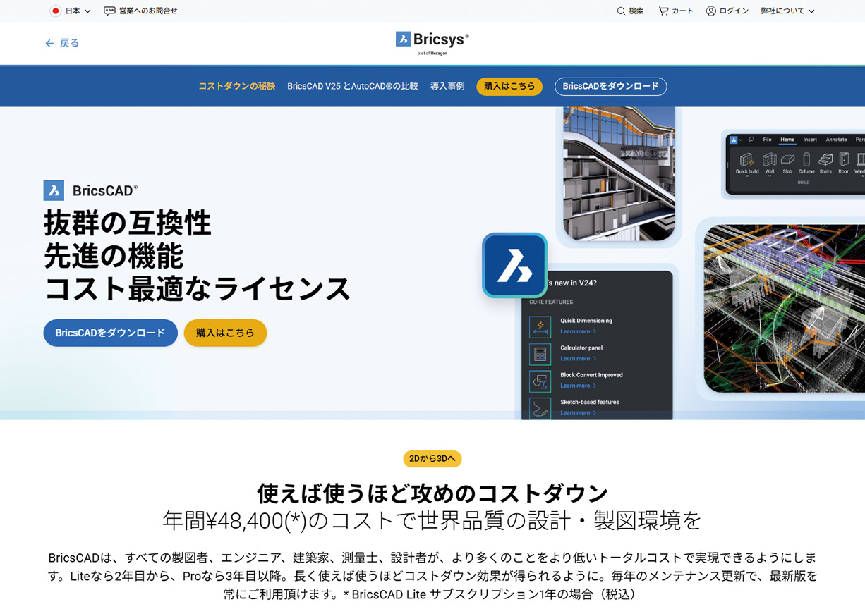 弊社が提供するBricsCADは、2D/3D/BIM/機械設計を一つのDWG基盤で実現するCADソフトウェアです。「永久ライセンス」「サブスクリプション」「ネットワークライセンス」など、多様なライセンス形態でお客様のご利用用途に合った提供を行なっております。汎用的な設計ツールとしてご利用いただけるだけでなく、建築、建設、製造と業界に特化した設計ツールとしても高くご評価いただいております。また、CADワークフローを強化するためのユニークでインテリジェントなツールとして、AIにも力を入れています。設計プロセスを支援する、2D/3D編集、コマンドアシスト、図面最適など、AIが設計の多くの時間を要する反復作業を軽減します。