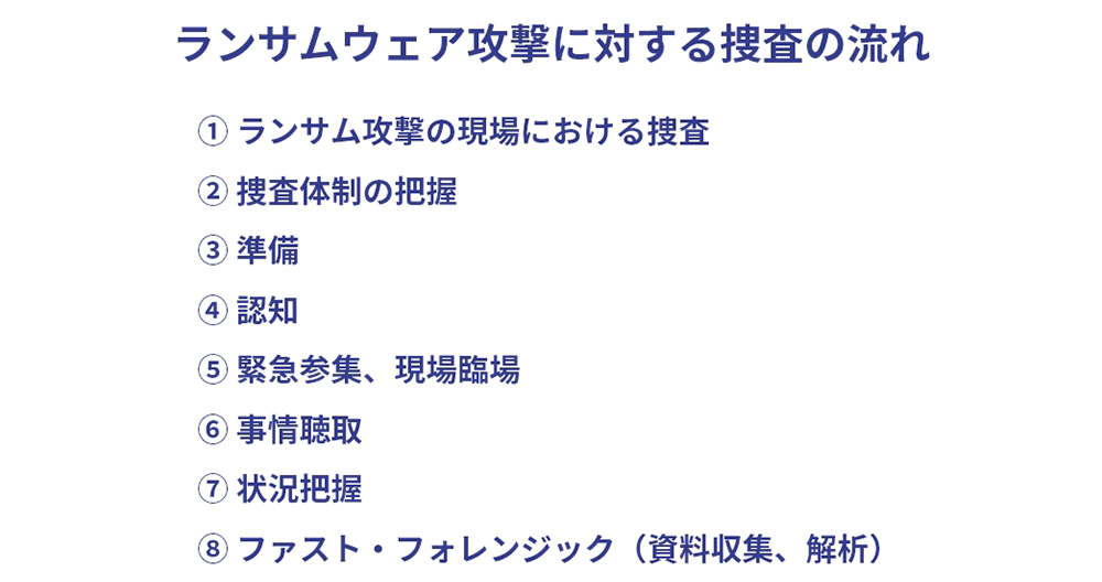 ランサムウェア攻撃が発生する前の準備段階や、被害が発生した際に捜査員が参照できるハンドブックになっているが、一般の企業でもこれに沿って準備していれば、万一、ランサムウェアの被害に遭ったときでも、迅速に捜査が進められるようになる。